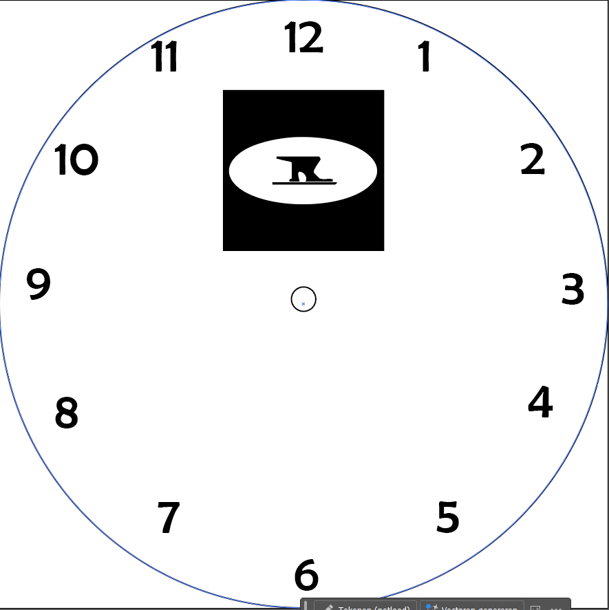 Ik heb een klok gemaakt in Illustrator, de klok heeft een diameter van 10 cm en zal echt werken met een AA batterij. Ik ga hem nog laten lazer snijden, daarna kan ik de wijzers erop doen en dan heb je dus een werkende klok. Hiernaast zie je een screenshot in Illustrator. Daaronder zie je het eindresultaat.